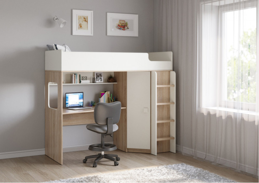 Учебная зона со столом под спальным местом открывает возможности для письменных работ,а также здесь удобно расположить ноутбук.